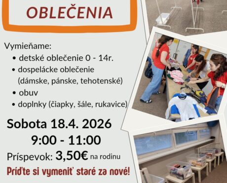 Dajte oblečeniu druhú šancu a osviežte si šatník v RC Macko! Milí rodičia, pozývame vás na náš jarný SWAP, kde sa ekológia stretáva s komunitou. Príďte si …