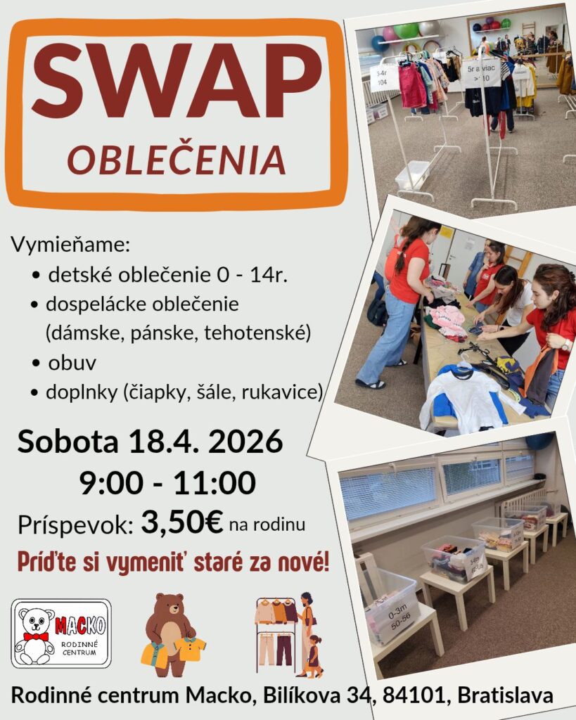 Milí rodičia, pozývame vás na náš jarný SWAP, kde sa ekológia stretáva s komunitou. Príďte si uloviť nové kúsky, kým sa vaše deti do sýtosti vybláznia v herničke.